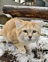 Hawk Creek was honored to collaborate with the Columbus Zoo & Aquarium to work with an unique species, Sand Cats! The genetics from these cats are vital to the global Sand Cat population since they are unrepresented in the US. Keeping genetics diverse is the best way to preserve species, both captive and wild. Through this project Hawk Creek has made groundbreaking discoveries that challenge the typical manner in which this species is housed. First and foremost, Sand Cats have typically been housed strictly indoors by most institutions. The Center believes that there is an immeasurable benefit to be had from sunshine, fresh air and choice. Even in Buffalo, our Sand Cats have thrived by having the option to go outside when they choose, even in the snow! In managing sand cats in this manner we have never experienced any of the typical health issues that the species is prone to when housed indoors.